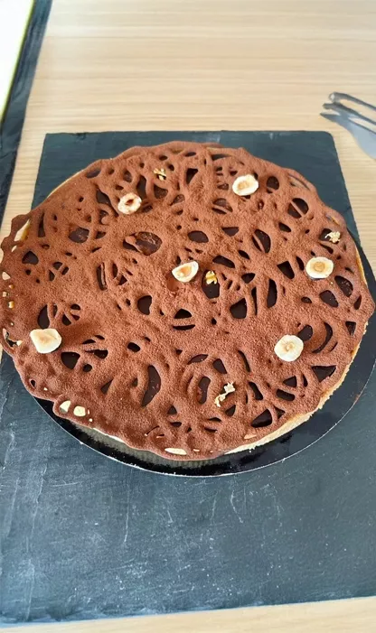 Pâte sucrée, Praliné, Financier Noisette, Crémeux Chocolat et Ganache montée Chocolat